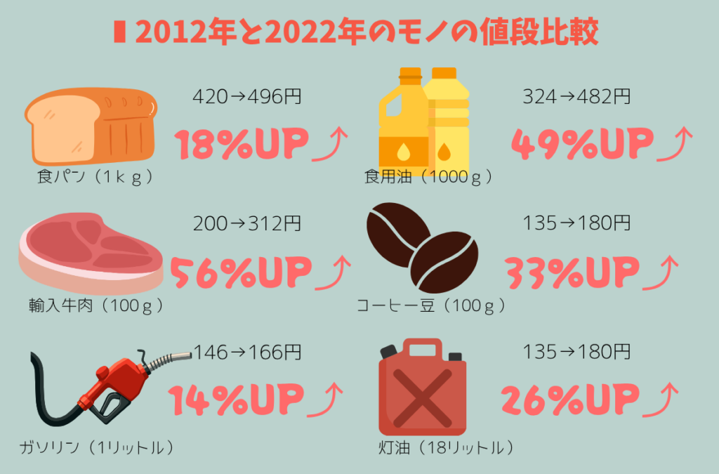 東京都23区での値段 2012年2022年ともに10月の価格