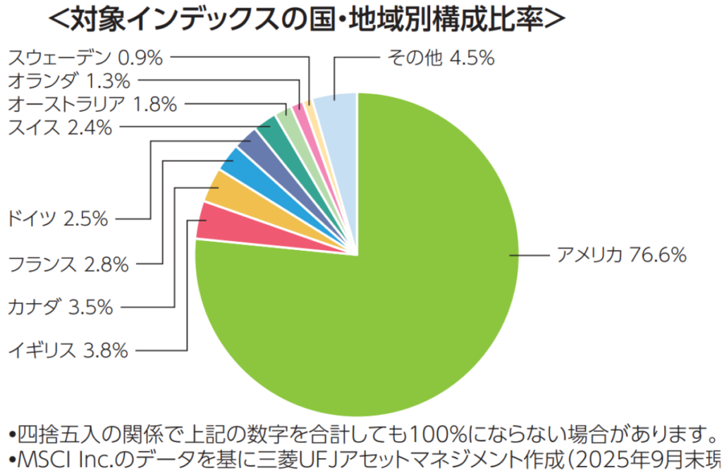 こちらは日本株を除いた先進国の代表株を世界市場の国別比率にバランス良く合わせた商品で、個別株など日本株を多く保有している方がバランスを取るのに最適な商品です。